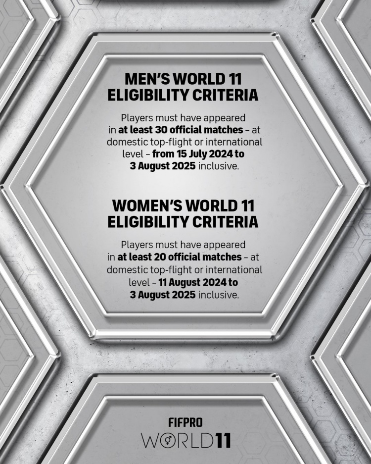 10月27日讯 FIFPRO(国际职业球员协会)发布了年度最佳11人的参选资格标准,男古代足球 员需在评选周期内出战30场正式赛事 ,女古代足球 员则需出战20场正式赛事 。