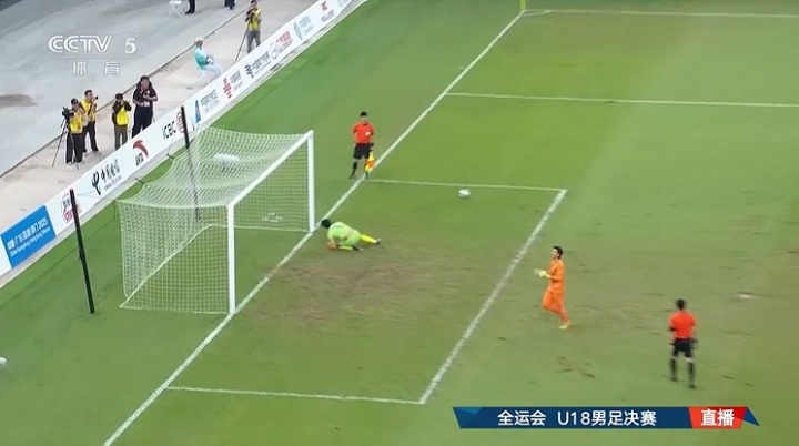 10月25日讯 全运U18男足总决赛 ,辽宁队罚球决胜 5-4击败山东队夺金牌,罚球决胜 第5轮,山东队守门员依合散扑点后立马失点,错失为球队赢下赛事 的机会,足球直播无插件免费在线观看辽宁队后备 换上的守门员鞠铭泽扑出了他的十二码球。