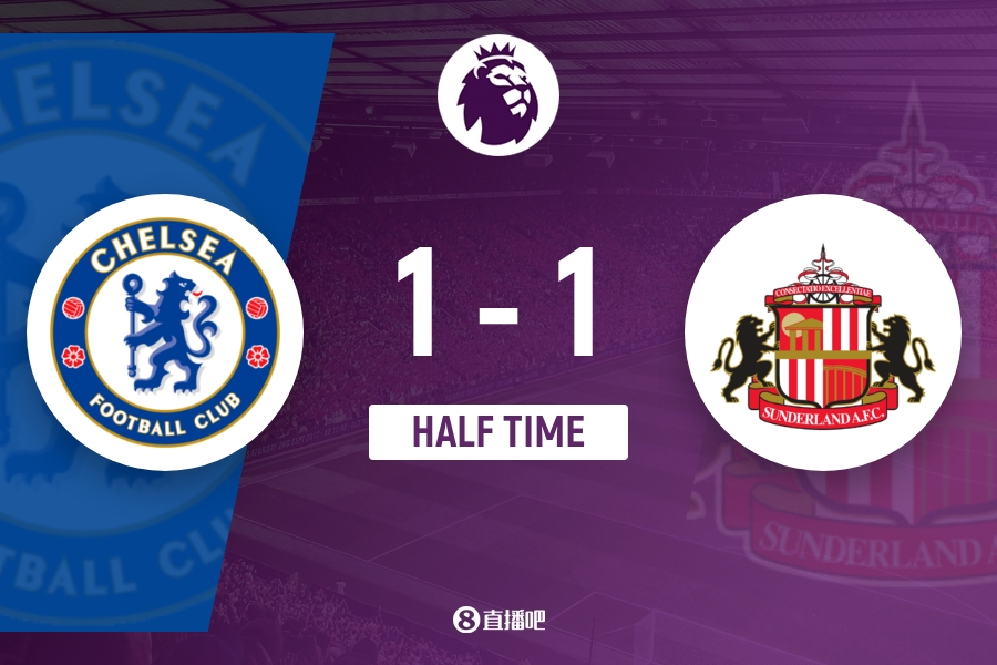 上半场加时补赛3分钟,半场结束,切尔西暂1-1桑德兰。