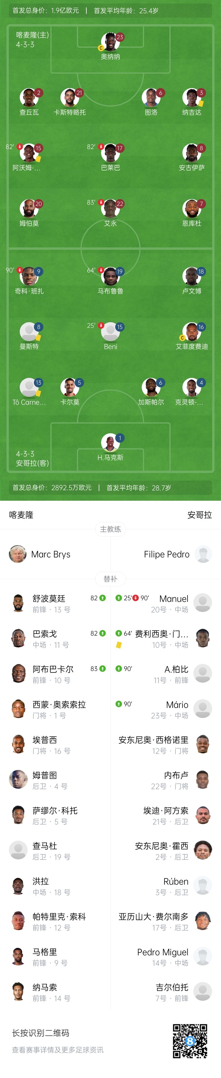 此役,喀麦隆派出的杆位阵形 身价高达1.9亿欧,姆贝莫、奥纳纳、安古伊萨、巴莱巴等球星悉数杆位。而对手安哥拉杆位身价不到2900万欧。